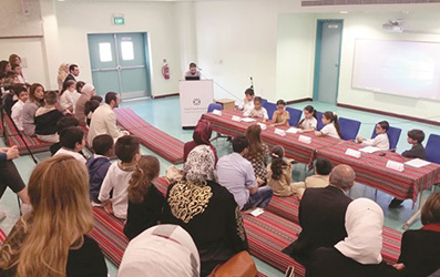 بمناسبة اليوم العالمي للغة العربية، أقام مسار اللُّغة العربية بالأكاديمية العربية الدولية مؤتمر الطلاب الأول للُّغة العربية، الذي يهدف إلى زيادة وعي الطلاب حول أهمية اللُّغة العربية وتقديرها، والتأمل في آليات المحافظة عليها، وإعادة استنهاضها، وقدّم عدد من الطلاب والطالبات 5 أوراق عملٍ متنوعة، عرضوا فيها وجهات نظرهم الخاصة حول الموضوع، بالإضافة إلى تحقيقات شفوية أجروها مع طلاب ومعلمين وعائلات داخل وخارج المدرسة.
