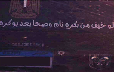 إلا أن الفترة الخيرة وبعد طغيان اللغة العامية وظهور مفردات جديدة فيها, تم تكسير قواعد اللغة العربية بدرجة غريبة, وأصبحت اللغة المكتوبة على السيارات لا تمت إلى اللغة العربية أو حتى العامية بصلة, وهذا ما ظهر فى الصورة التى عرضها منتدى نايل موتورز المتخصص فى شئون السيارات والتى تركها للأعضاء لكى يعلقون عليها, وكما يظهر فى الصورة لا توجد كلمة واحدة صحيحة من الكلمات التى كتبها سائق السيارة السوزوكى الفان, والذى يستحق بما كتبه أن نشيّع اللغة العربية إلى مثواها الأخير.