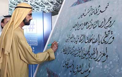 ويأتي في مقدمة هذه المبادرات إطلاق الشيخ محمد بن راشد آل مكتوم، نائب رئيس دولة الإمارات رئيس مجلس الوزراء حاكم دبي، ميثاقاً للغة العربية عام 2012، انطلاقاً من "رؤية الإمارات 2021"، التي تهدف إلى جعل الإمارات مركزاً للامتياز في اللغة العربية، إضافة إلى عدد من المبادرات الأخرى، من بينها تأسيس مجلس استشاري برئاسة وزير الثقافة، لتطبيق مبادئ الميثاق، وإنشاء كلية للترجمة ومعهد لتعليم العربية لغير الناطقين بها، فضلا عن مبادرة إلكترونية لتعزيز المحتوى العربي على شبكة الإنترنت.