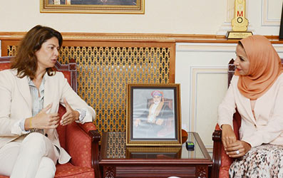 واستقبلت صاحبة السمو السيدة الدكتورة منى بنت فهد آل سعيد مساعدة رئيس جامعة السلطان قابوس للتعاون الخارجي معالي لوثيا فيغار وزيرة التربية والشباب والرياضة في حكومة إقليم مدريد بمملكة أسبانيا والوفد المرافق لها.
