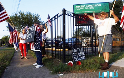 وذكرت “الصحيفة” أنه قبل الساعة الثامنة صباحاً، الاثنين الماضي، قام نحو 30 متظاهراً بالتظاهر حول السياج المحيط بالمدرسة، رافعين أعلام أمريكا، و”إسرائيل”، والهتاف بعبارات احتجاجية ضد المدرسة التي تدرس اللغة العربية.