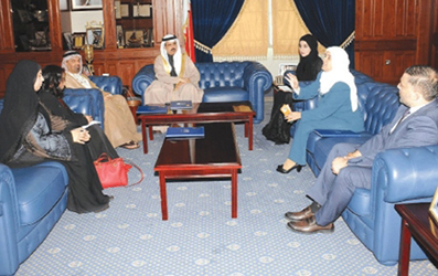 استقبل سعادة الدكتور ماجد بن علي النعيمي وزير التربية والتعليم بمكتبه بديوان الوزارة بمدينة عيسى الأستاذة نجلاء الشامسي الأمين العام لمشروع (تحدي القراءة العربي) الذي تفضل بإطلاقه صاحب السمو الشيخ محمد بن راشد آل مكتوم نائب رئيس دولة الإمارات العربية المتحدة رئيس مجلس الوزراء حاكم دبي، لتشجيع القراءة لدى الطلبة في العالم العربي، عبر التزام أكثر من مليون طالب بالمشاركة بقراءة خمسين مليون كتاب خلال كل عام دراسي.
