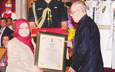 الدكتورة هيفاء شاكري تستلم جائزة رئيس جمهورية الهند لخدمتها للغة العربية للسنة 2015م