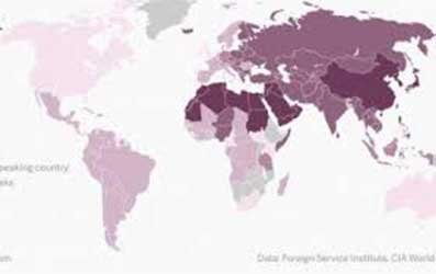 ومؤخراً أصدر معهد الخدمات الخارجية التابع لوزارة الخارجية الأميركية خريطة للغات العالم، تم تلوينها وتصنيفها وفق أكثر لغات العالم صعوبة، يعمل على إتقانها الدبلوماسيون الحاليون، الذين يستعدون لقيادة الجهود الخارجية للحكومة الأميركية مستقبلاً، وفق موقع "هاف بوست عربي".