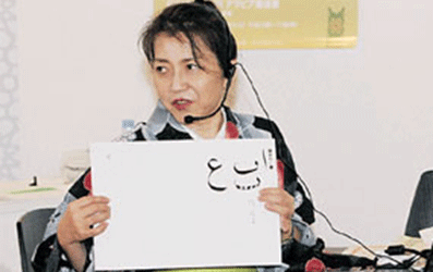 خطاطة يابانية مسلمة تبـهــر زوار إثـراء المـعــرفة