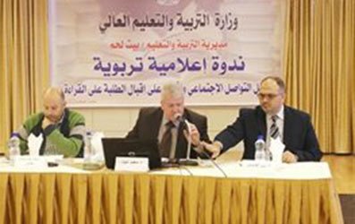 جاء ذلك خلال ندوة اعلامية تربوية نظمها قسم العلاقات العامة والاعلام التربوي في مديرية تربية بيت لحم بالتعاون مع دائرة اللغة العربية في جامعة بيت لحم والتي جاءت بعنوان " وسائل التواصل الاجتماعي وآثارها على اقبال الطلبة على القراءة".