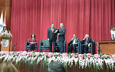 وقلد العدوي دروعا تذكارية إلى الوزير عريجي وأعضاء اللجنة.