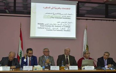 ثم بدأ الأمين العام لاتحاد الكتّاب اللبنانيين الدكتور وجيه فانوس محاضرته عن "واقع العربية في بريطانيا"، وفيها تحدّث عن النظرة التأسيسية إلى اللغة العربية في جامعة أوكسفورد.